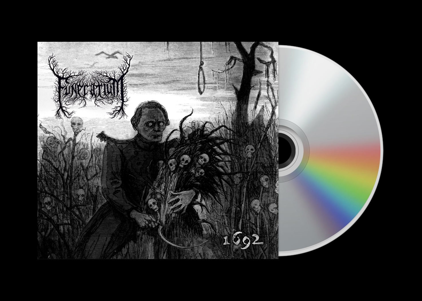 The 2022 album 1692 by the French atmospheric black metal project Funérarium, released through Acid Vicious, is a grim conceptual work dedicated to the history and dark folklore of the Salem witch trials. Masterminded by the prolific musician Kardec, the record moves away from the band's later cosmic themes to explore a more grounded, historical horror aesthetic rooted in the paranoia and religious fervor of 17th-century Massachusetts. Musically, it is often cited as one of the project's most aggressive and direct releases, blending cold, traditional black metal riffs with the suffocating atmosphere for which Funérarium is known. The album is distinguished by its collaborative nature, featuring guest appearances from several figures in the underground scene, including Brouillard, Certa Mortis, Gorgon, and Erroiak, each contributing to the narrative weight of the record. The tracklist follows a chronological descent into tragedy, beginning with Welcome to Salem and Witch Hunt, moving through the harrowing Tituba Torture and Ember Sentence, and culminating in the finality of A Witch Is Born. Issued as a limited edition professional CD digipak, 1692 stands as a visceral piece of storytelling that uses the medium of extreme metal to reflect on themes of human cruelty, isolation, and the birth of a darker occult legacy.