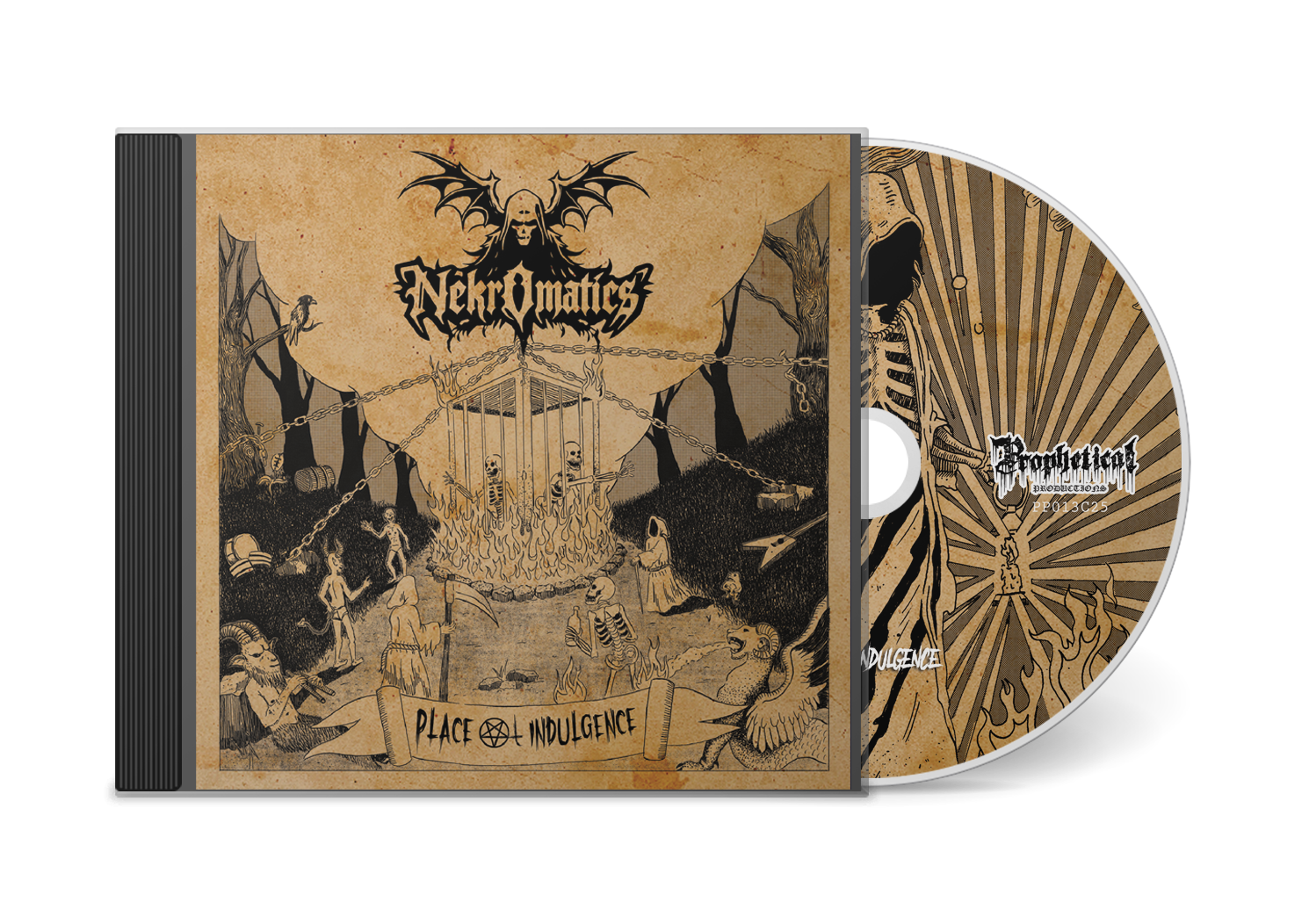 Symphonic Black and Death Metal. The band was founded by two prominent figures in the Portuguese underground: Melek Taus (Jorge Matos, known for his work in Ruttenskalle and Torn Fabriks) and Melkor (José Marreiros, a prolific multi-instrumentalist involved in Apocryphal Wound and Martelo Negro). What started as a studio-based duo quickly evolved into a full lineup featuring Frederico Brum on guitars, Rodrigo Dias (Varkïn) on bass, and Manuel Silva (Hekaton) on drums. The sound of Place of Indulgence is a ritualistic and cinematic journey, characterized by massive orchestral arrangements, deep guttural vocals, and a punishing rhythmic foundation. The album explores dark, psychological themes across seven tracks, including standouts like Overkill Boulevard and Shadows Await Behind the Walls. One of the most talked-about moments of the release cycle was their dark, symphonic reimagining of the W.A.S.P. classic Fuck Like a Beast, which transformed the glam rock anthem into a somber, ritualistic black/death metal hymn. This debut has solidified Nekromatics as one of the most exciting symphonic extreme metal acts to emerge from Margem Sul in recent years.